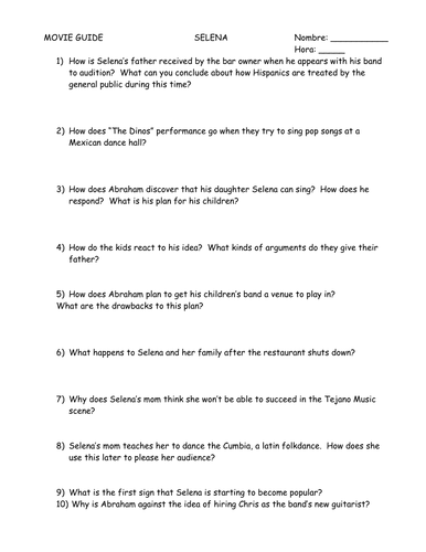 Browse selena movie guide resources on Teachers Pay Teachers a marketplace trusted by millions of teachers for original educational resources. It includes a paragraph each on. Worksheets that save paper ink and time.